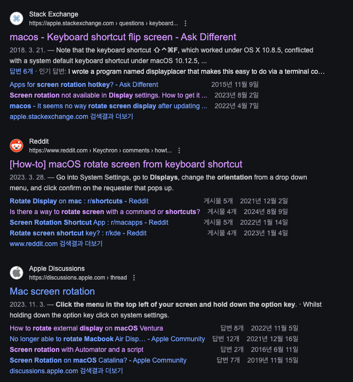 다음과 같이 단축키를 통한 화면 회전에 필요성을 이야기하고 있다. 근데 최근 자료는 잘 없더라,,